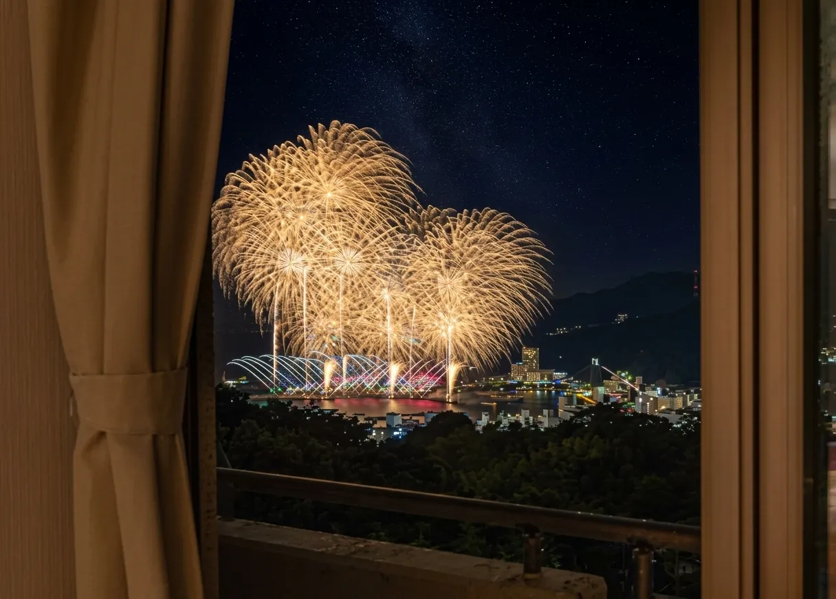 熱海の温泉街を見下ろし、相模湾を一望できる眺望
