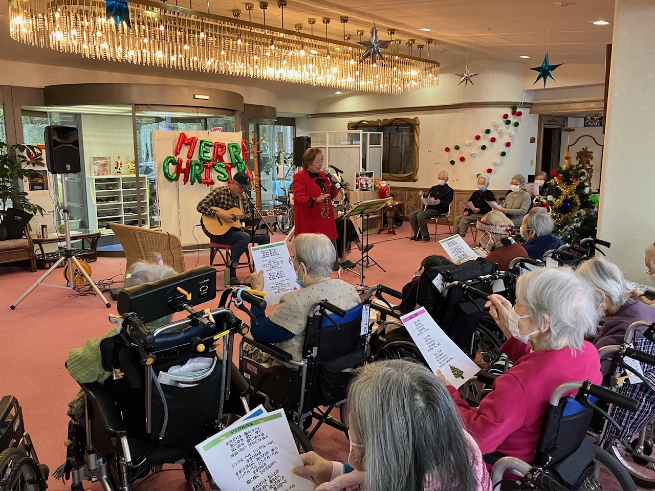 1号館(介護付き有料老人ホーム)では、クリスマスに合わせてコンサート開催!
