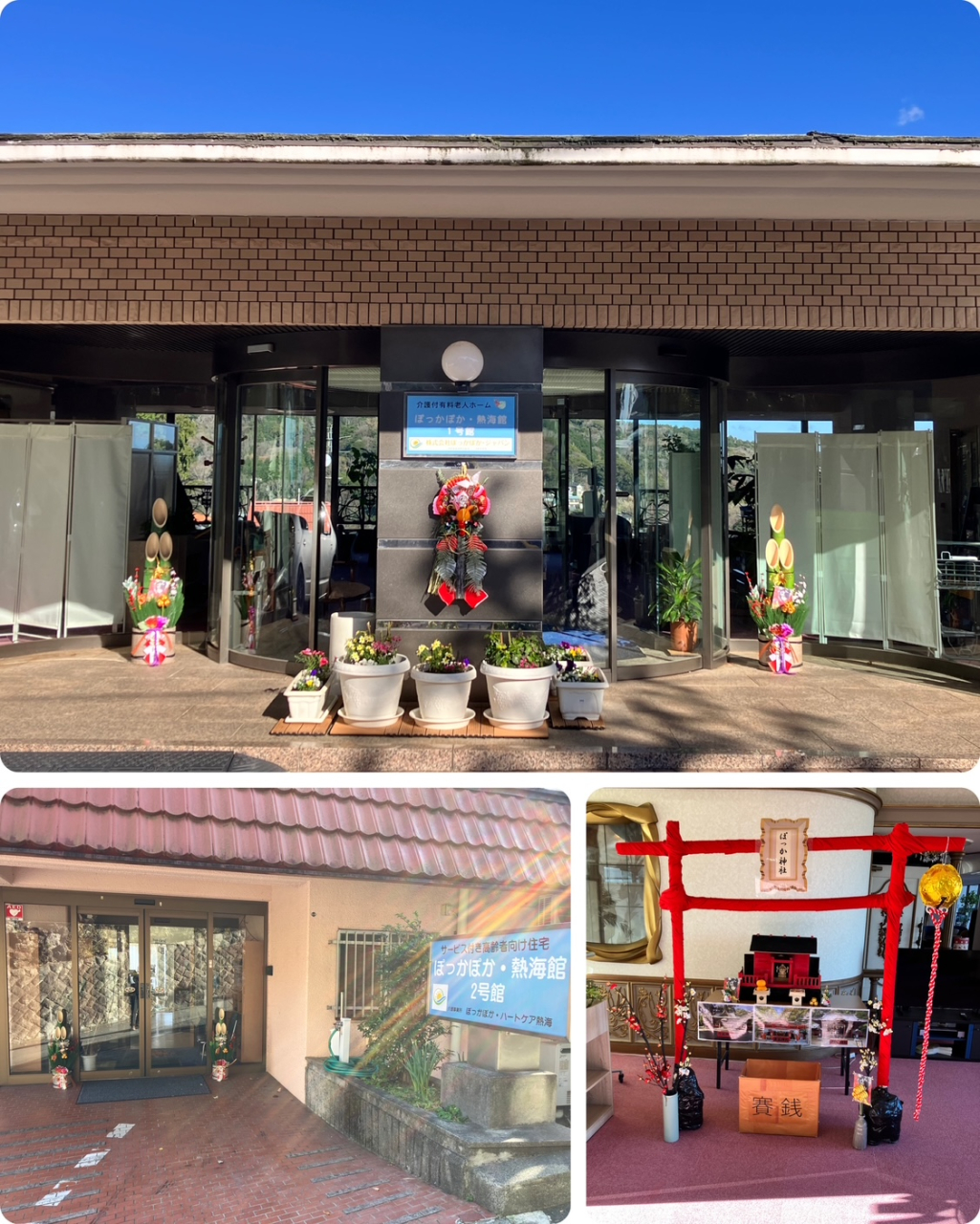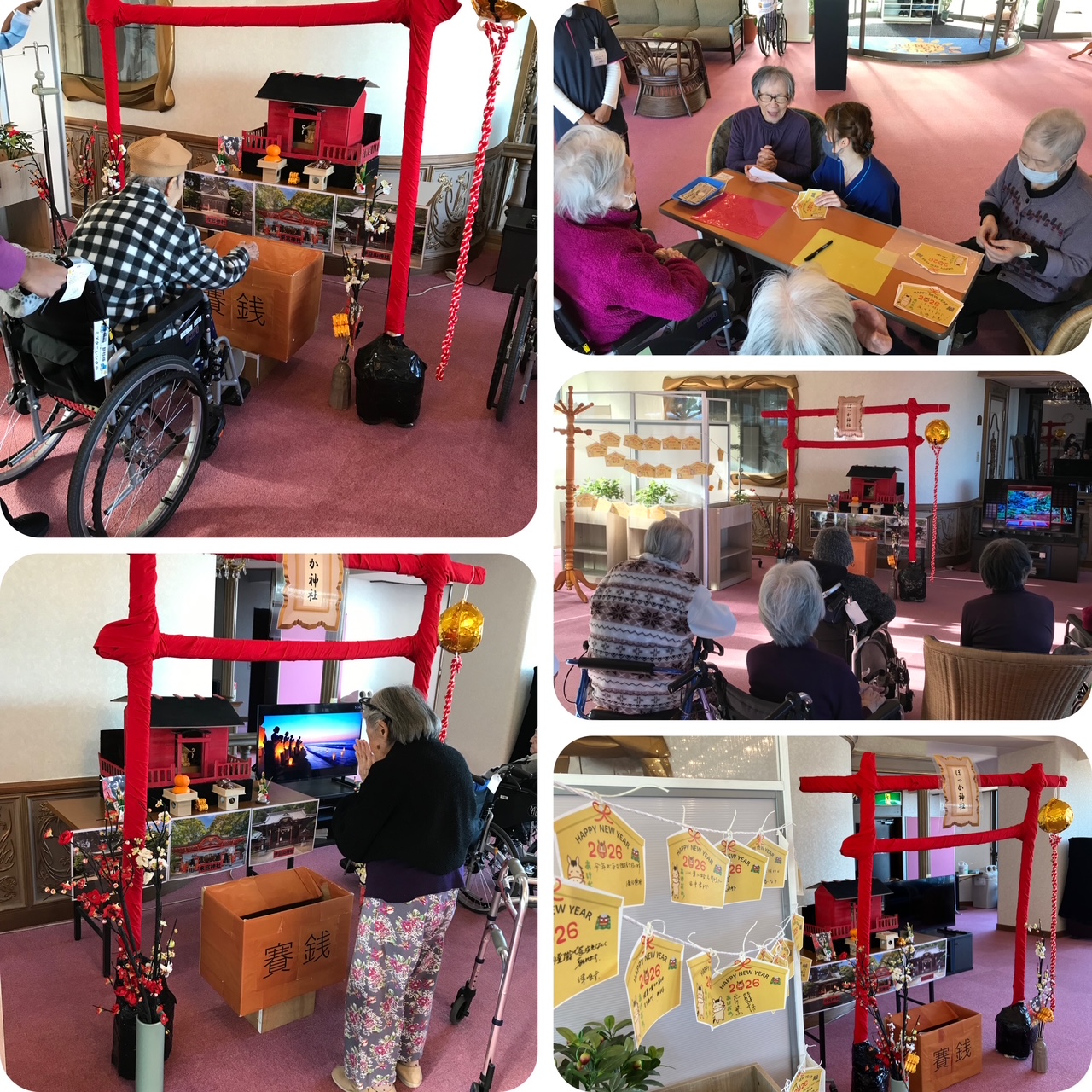 1号館では、入居者の皆様方と清々しく新年を迎えさせていただき、5階ロビーに設置した「ぽっか神社」に初詣でした。