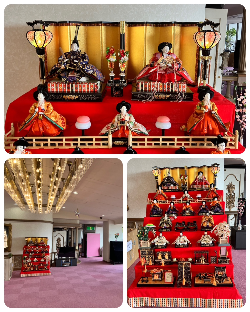 毎年のことですが、1号館ロビーに「ひな壇」を設置! 華やかなロビーとなりました。