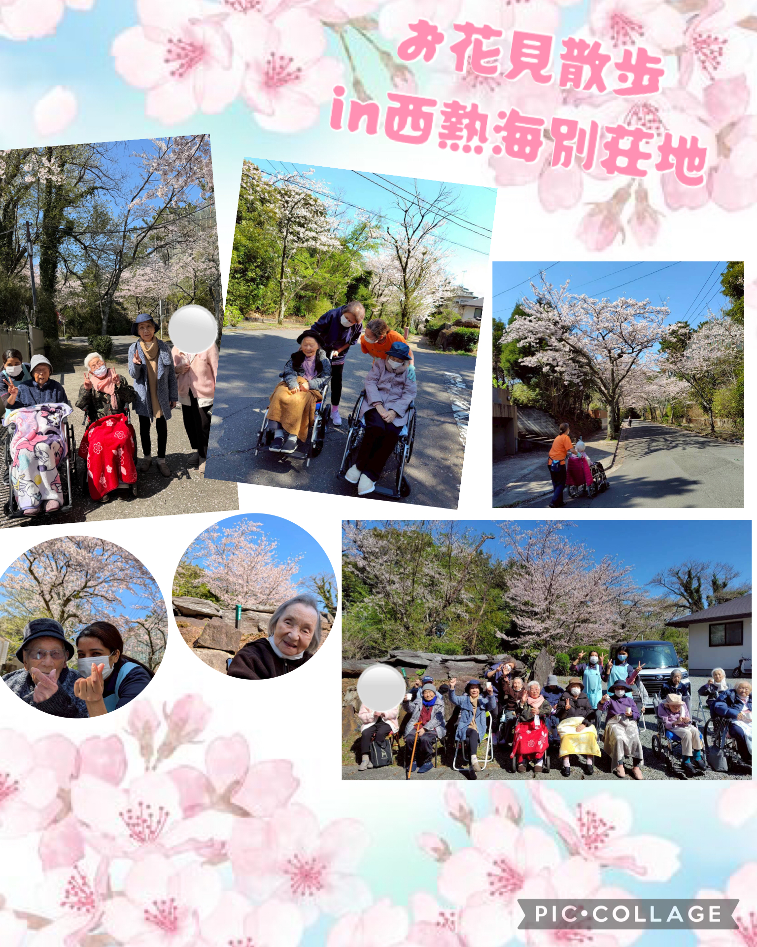4月3日晴天の中ぽっかぽか熱海館2号館の 近くにある西熱海別荘地付近にて利用者様方とお花見散歩をしに行 きました